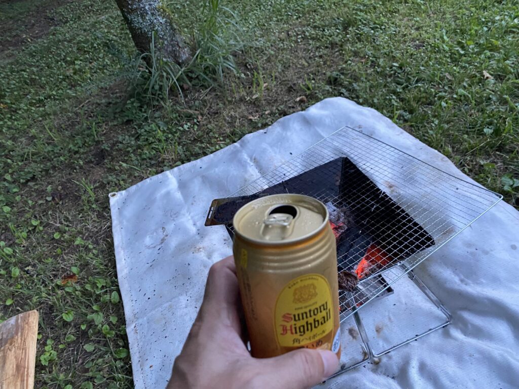 食事の後はだんだん小さくなっていく火を眺めながらチビチビと・・・