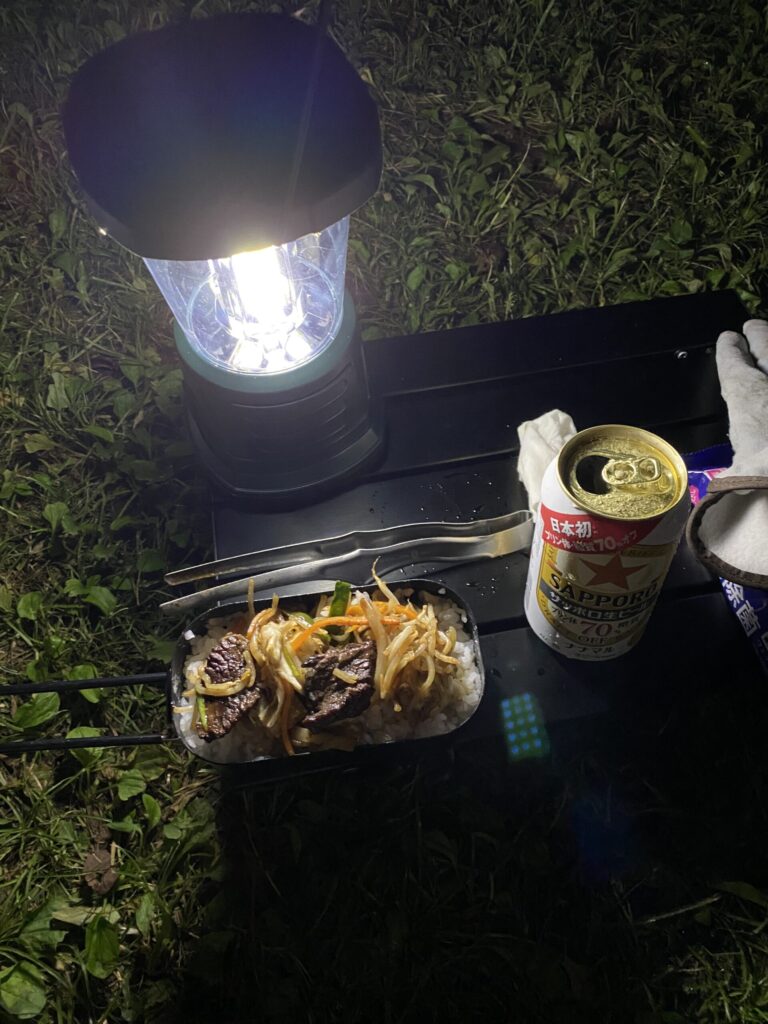 テントやタープを張らなかったのも片付けを楽にするため・・、気分はイマイチだけど呑み食い出来りゃあいいんです。