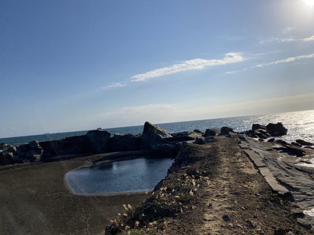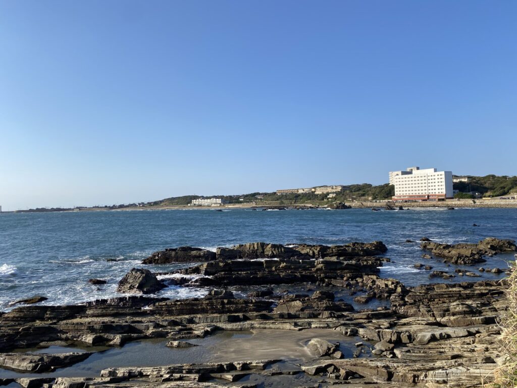 この辺りは岩がゴツゴツしてて太平洋の荒々しさを感じます・・、瀬戸内では見られない水平線が見えて旅してるなあ~~って気がしてくるのです・・