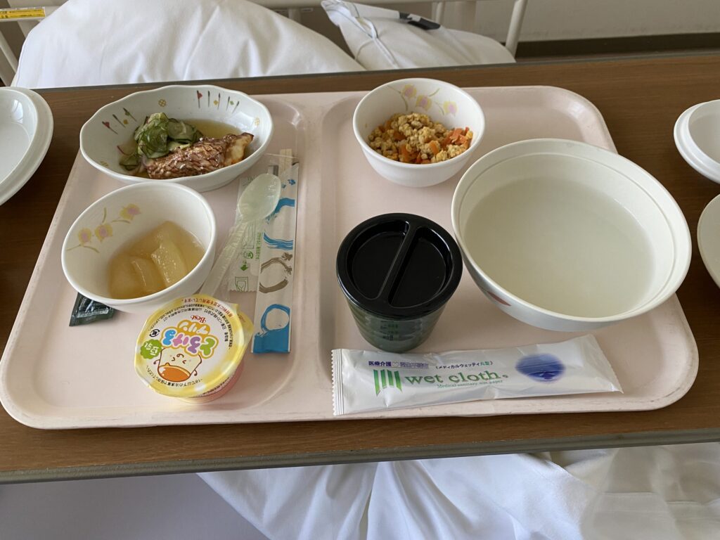 朝から絶食していてやっと夕食・・、久しぶりの病院食です。