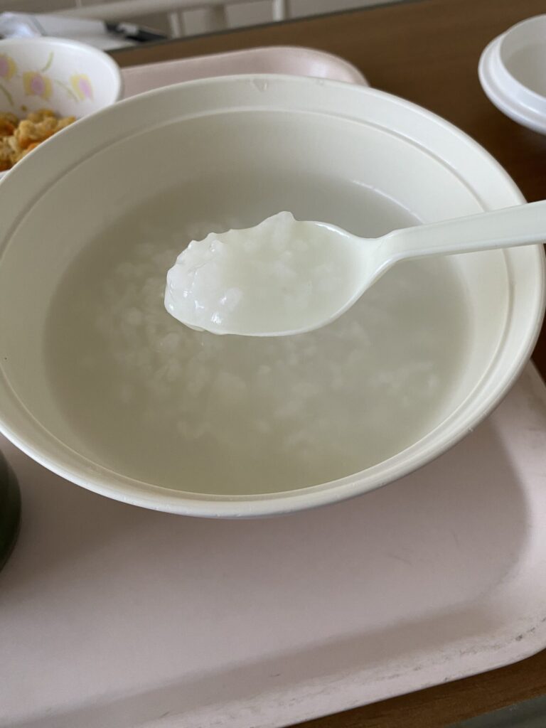これでも昔に比べれば量は多くなったと思うのです・・、味付けも意外にしっかりしててなかなか美味いのですが、如何せん・・、お粥じゃオジさんは物足らないのです・・、味噌汁もないし・・