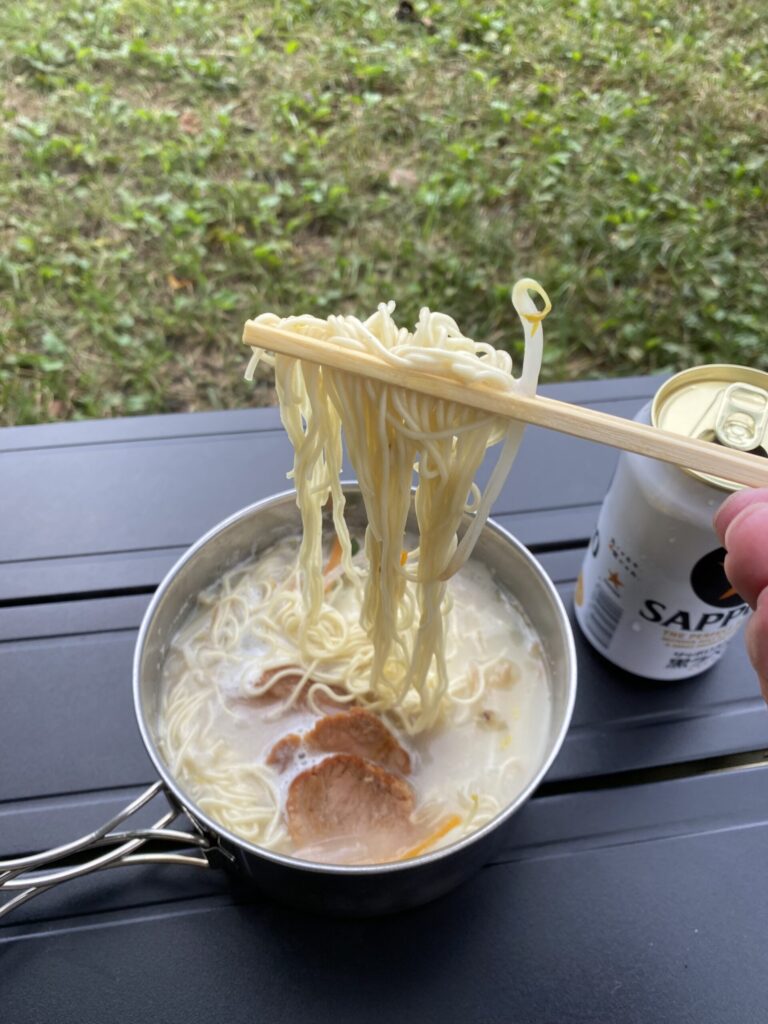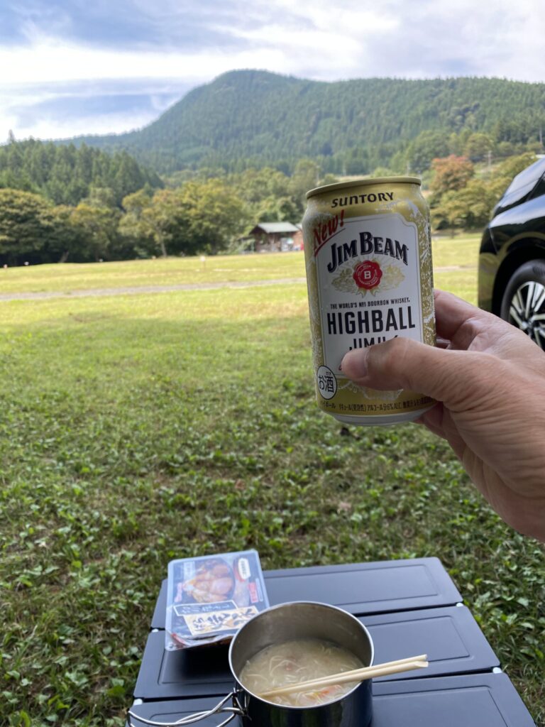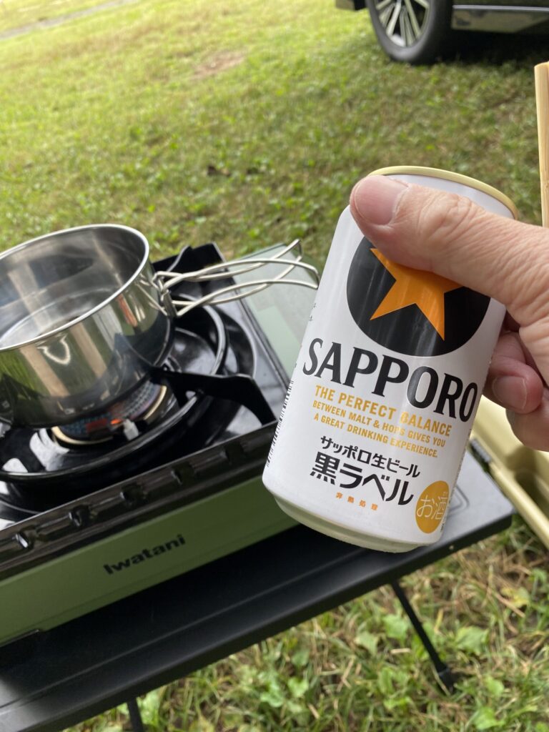 テーブルと椅子をササッと引っ張り出して、お湯を沸かしながらプシュッ!
